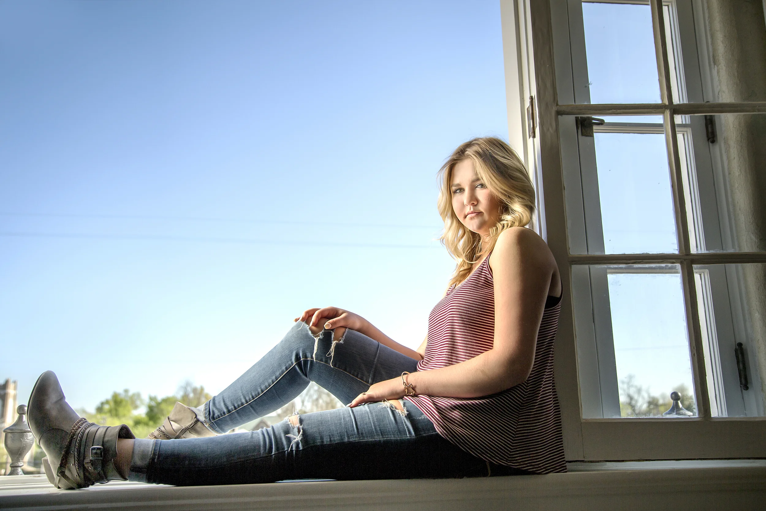 April has been a full month of editing, consulting and lots of travel. I feel like I spent most of the month on the road and I am just now spending a few days sitting at a desk and catching up on my work. At the beginning of the month I received a text message in the early morning hours for a senior hoping to set up an appointment. At the time I was booked over 2 weeks out, but that wasn't going to work for her, so I agreed to do a session that afternoon. That's kind of quick for me to get an idea of what someone wants, research and get permission for a location and consult on clothing (something of which we didn't have time for). As a result, I spent most of my day trying to find somewhere "different" than all of the usual hot spots in town to shoot...and at 4 that afternoon I finally found it! A storage room with quite a beautiful window downtown. We received permission to use it after-hours (resulting in someone having to stay late and let us in) and it was so worth it in my opinion!