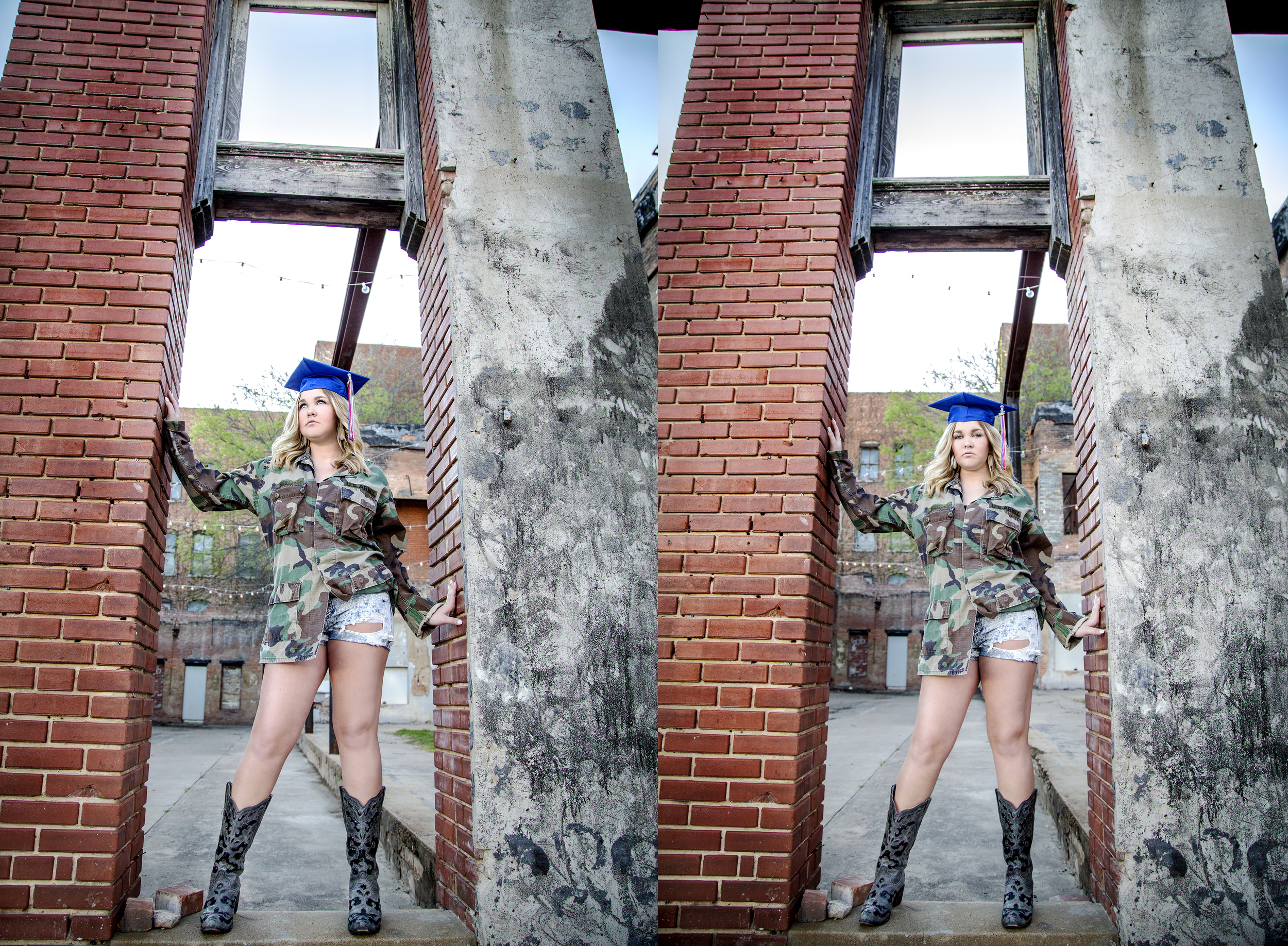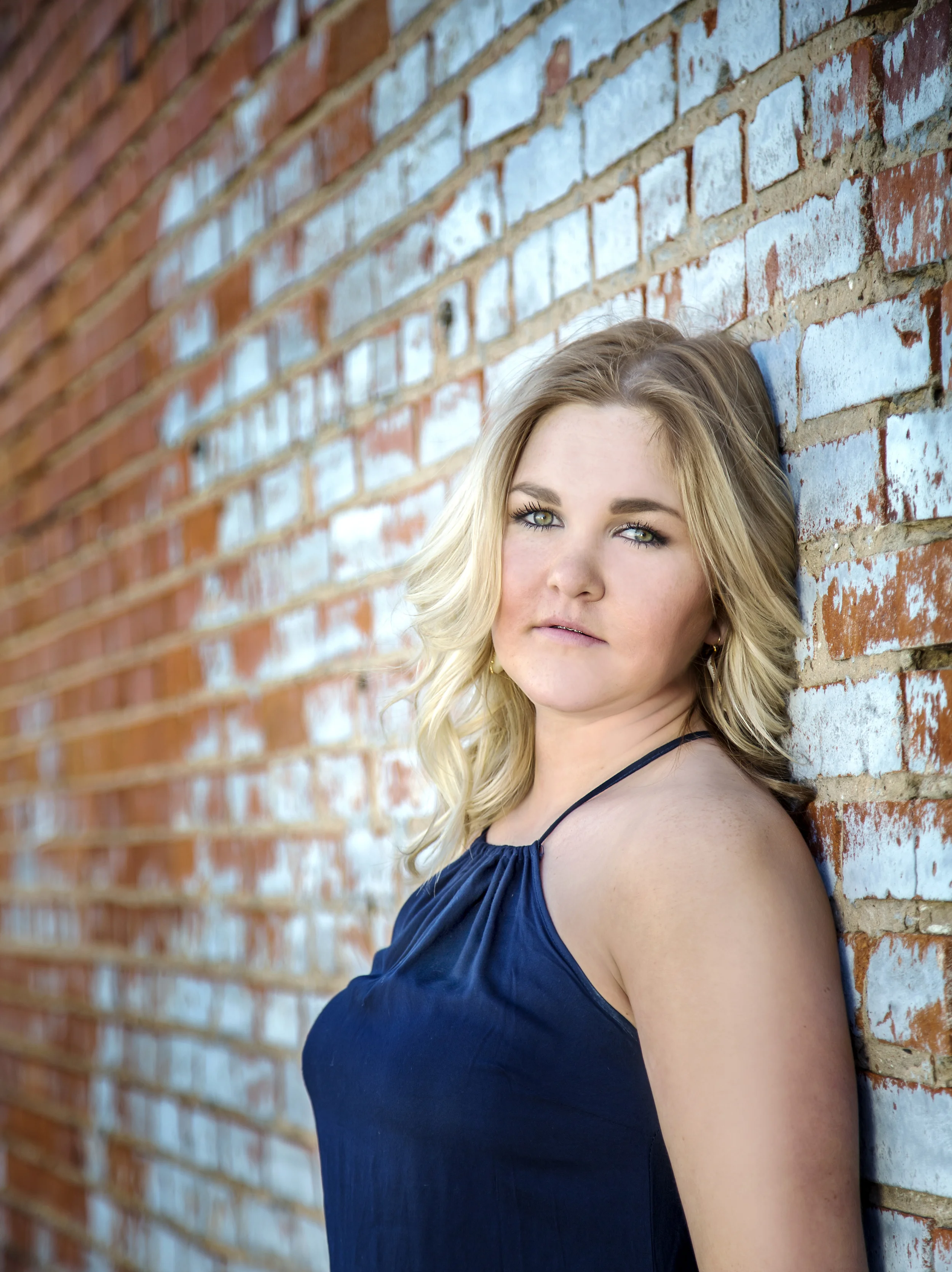 A normal senior session with me is up to an hour and a half with 3 clothing changes and 3 locations within 10 miles of each other. I remembered passing downtown there is a couple of cool older buildings with vines growing up the wall and thought this would be a neat place to check out for a second option at the shoot. Although I normally do not have brick walls in my images (my personal preference to avoid as it has been overused), the client asked if she could try it and with the different colored bricks and vines, I think it is a slightly fresher take on an old go to.