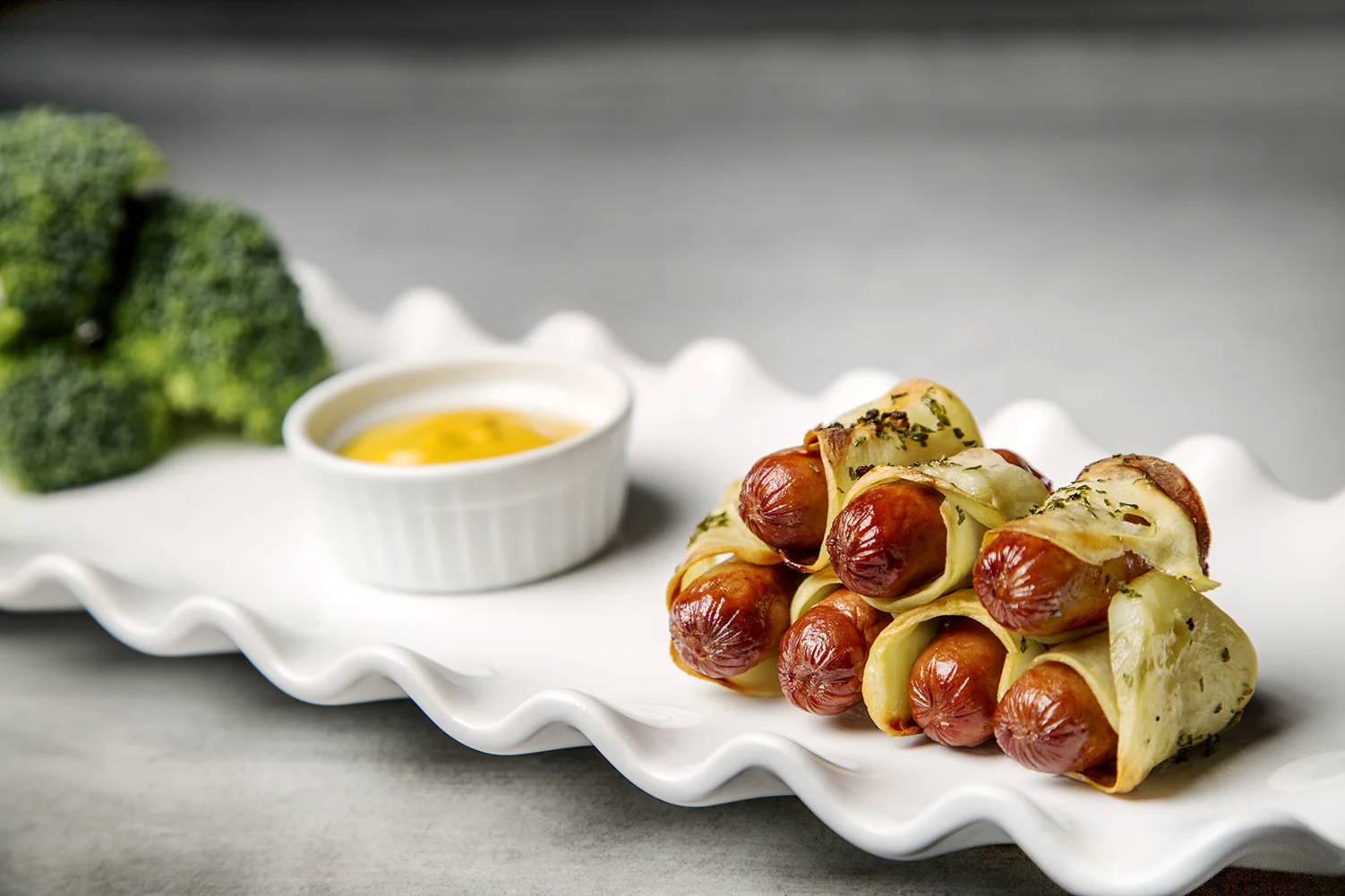 Day 21: Football Sunday weiners: they're winners! Mini Whole 30 compliant hotdogs wrapped in thinly sliced potatoes and baked. Served with mustard and fresh broccoli.