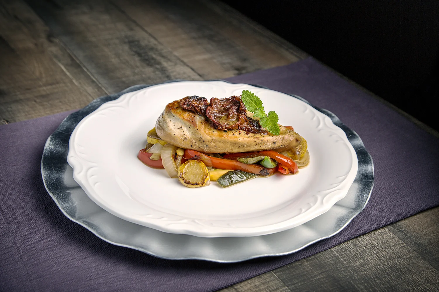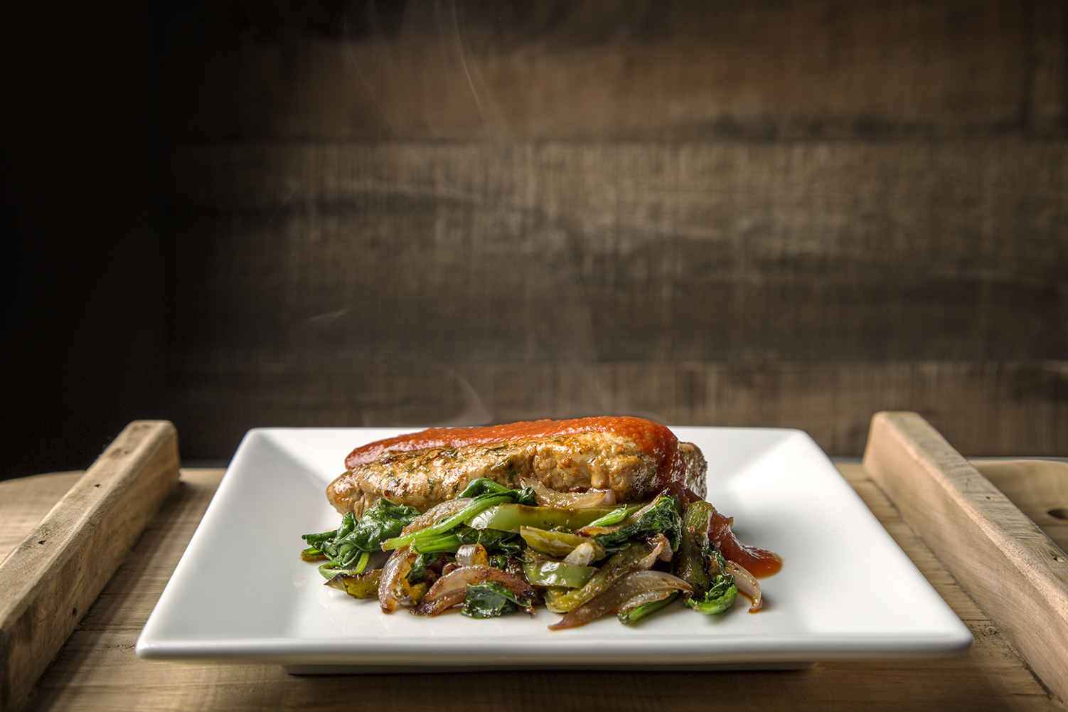 Day 23: This can't be compliant pork chop- so I still hate pork, but cover in spicy tomato sauce and throw in fajita style veggies. Yeah I'll bite.