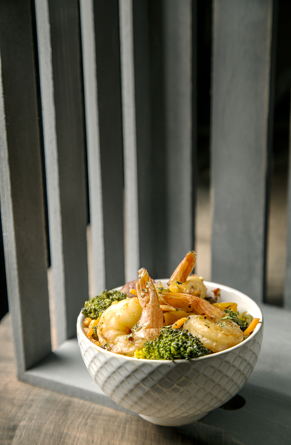 I'd eat that. Stir-fry carrots, broccoli, onions, shrimp and deer hot links.