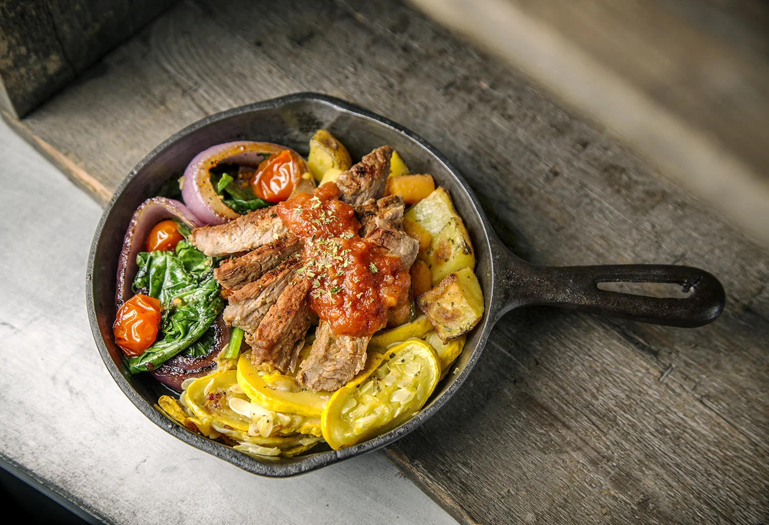 Day 30: The I made it to the finish skillet- or the otherwise known as "everything but the kitchen sink finale." I ate it all. Cooked a bit of every veggie I had sitting around and topped with fajita steak and spicy tomato sauce.